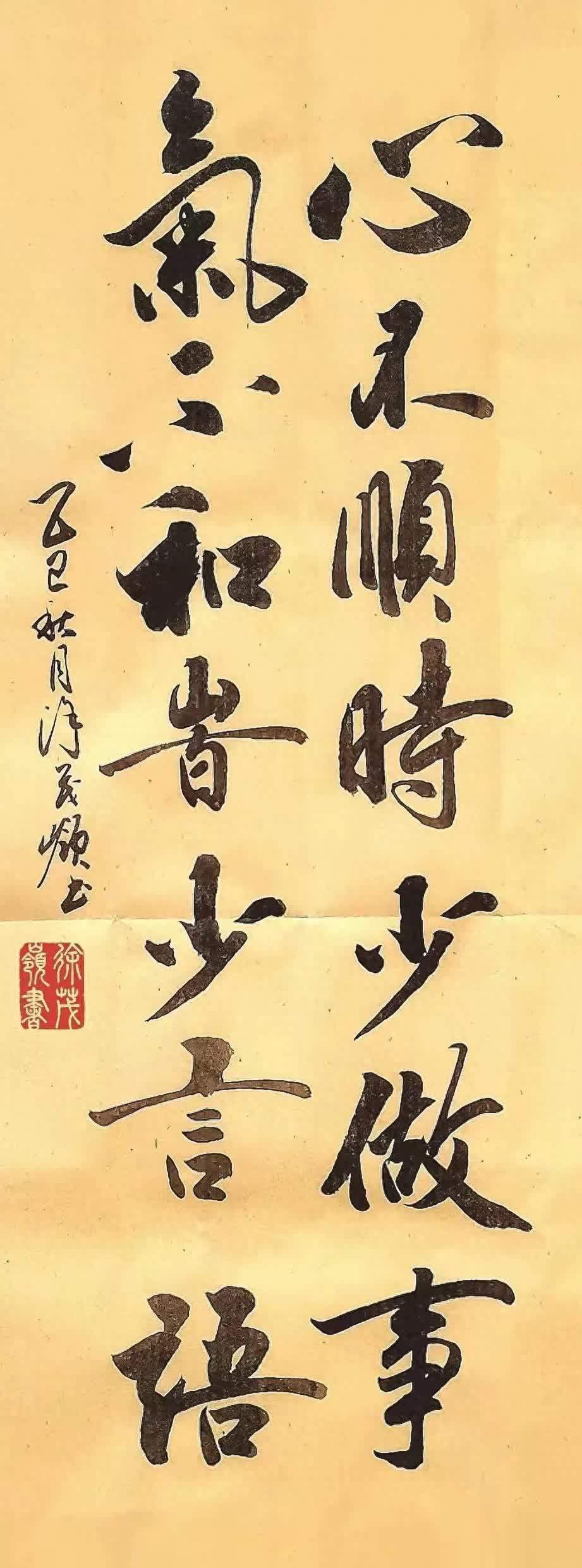 这毛笔字像盆冷水,墨色里裹着的,是多少人摔过跤才懂的“稳”:你急着撒的气、做的决定,早把日子搅成了烂摊子。